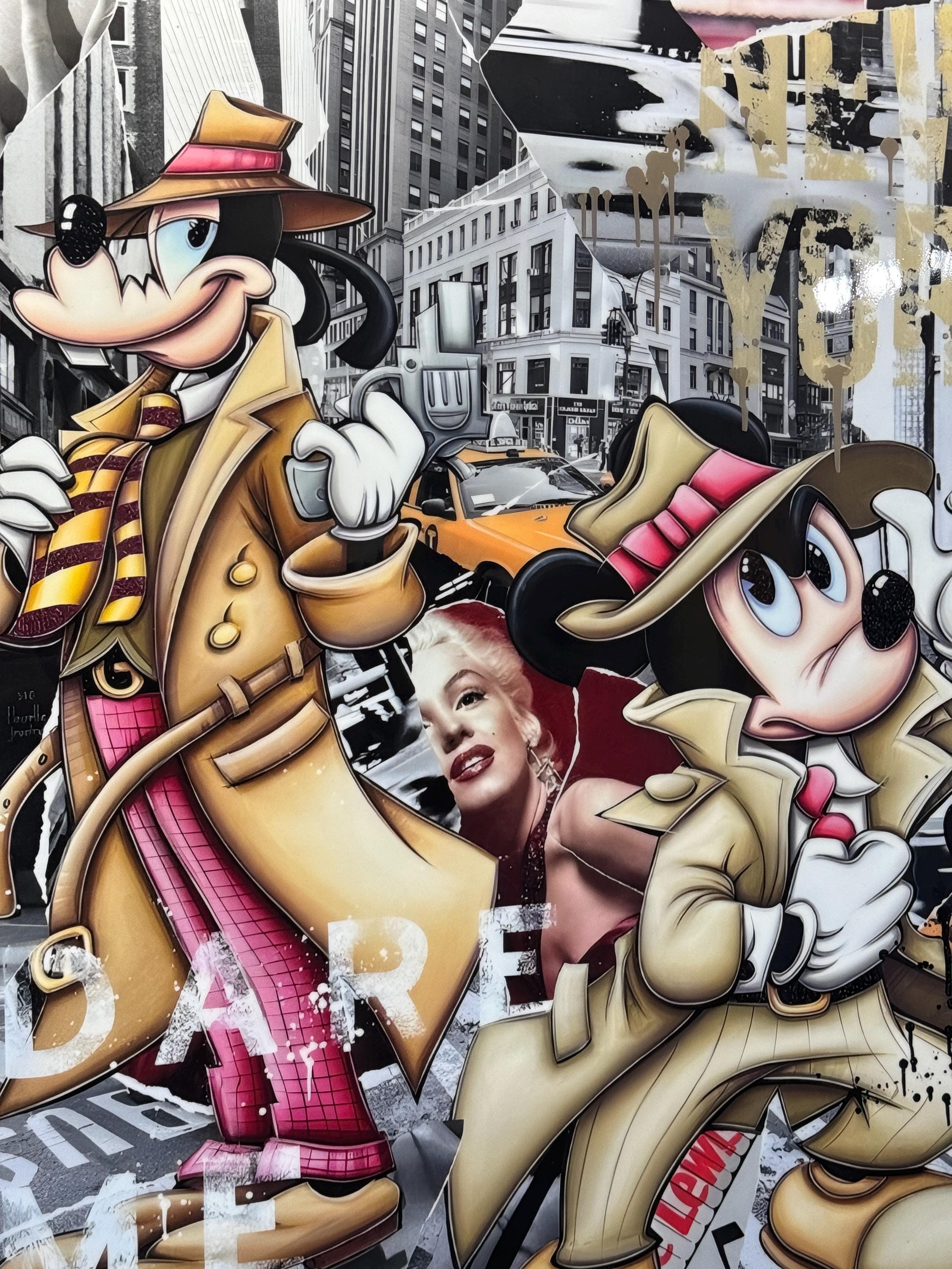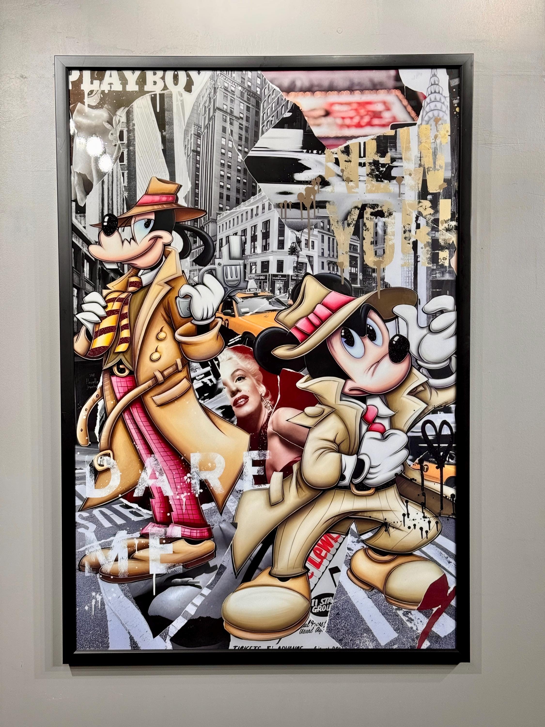 Dare Me Pop Art Wall Art, Mickey and Marilyn Collage, 3D Epoxy Wall Decor, New York Street Style, Luxury Art Gift for Him & Her