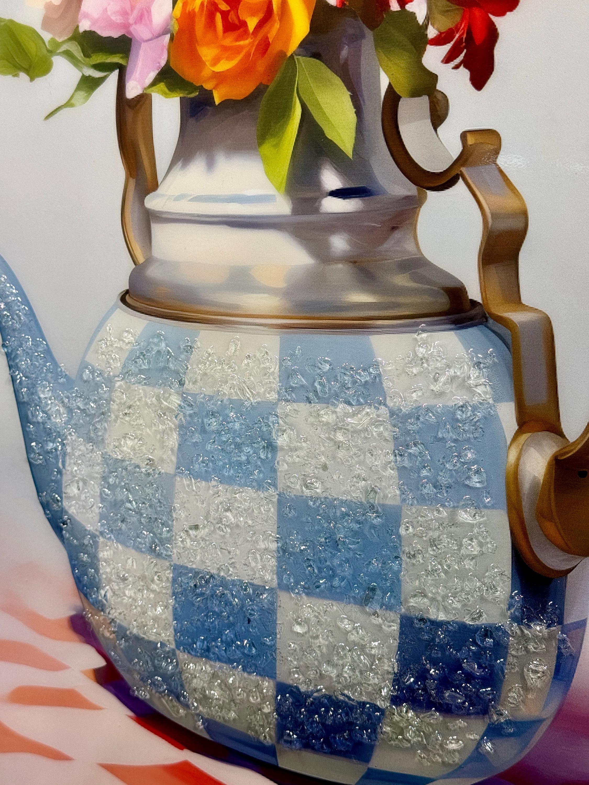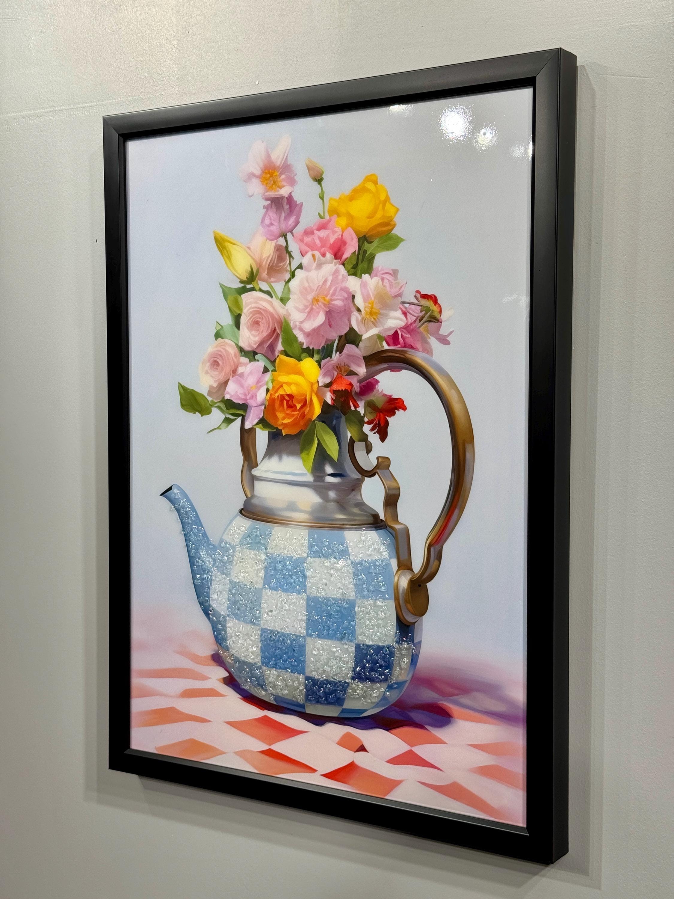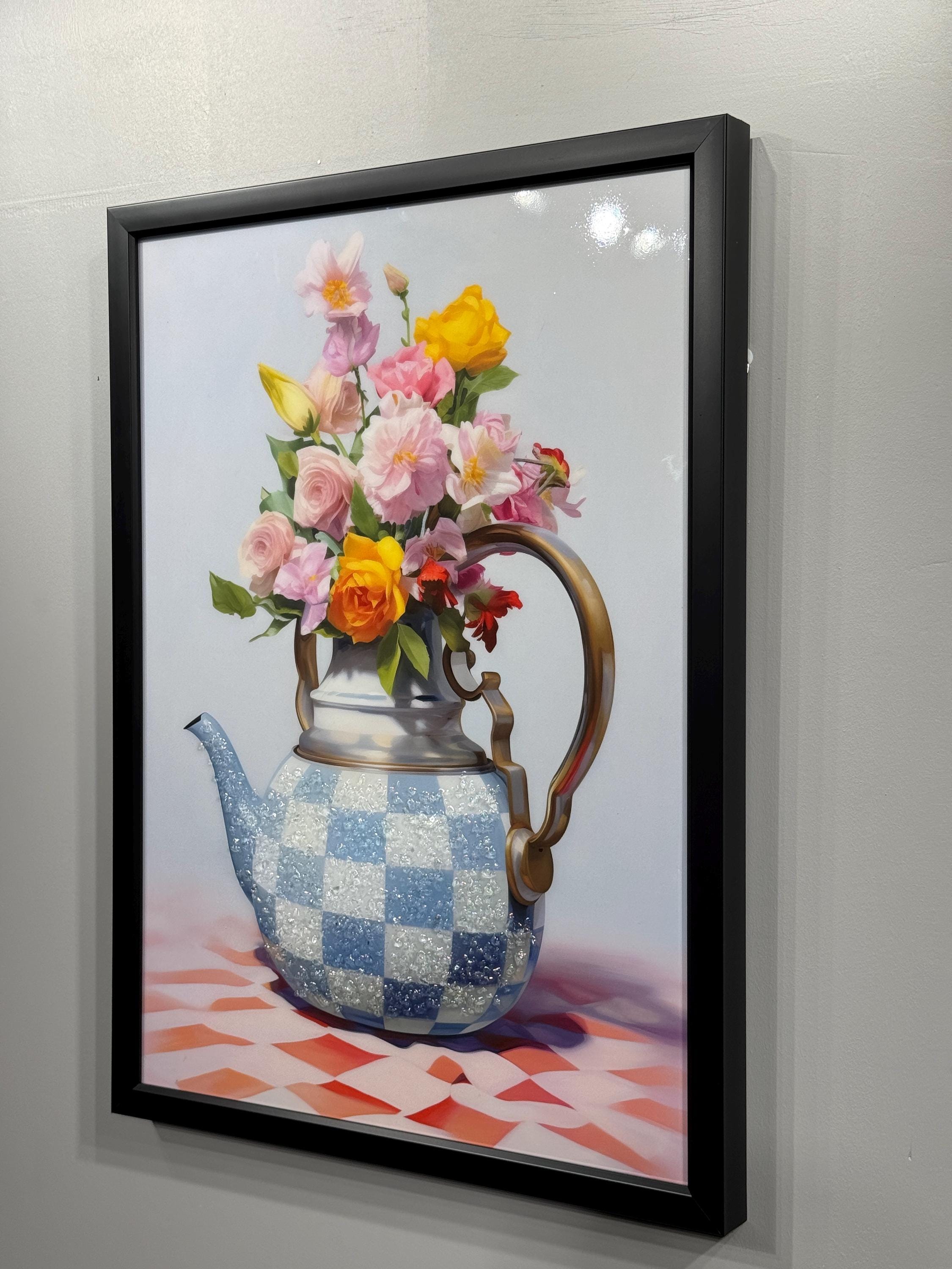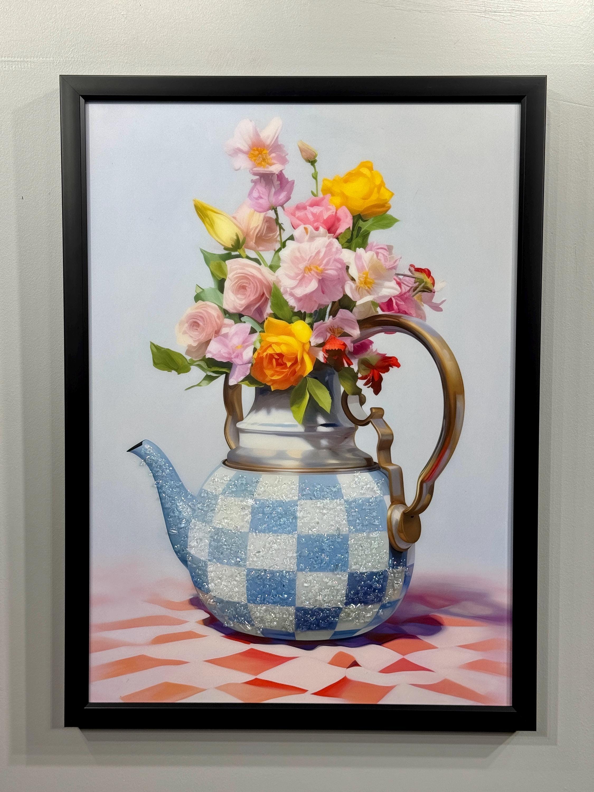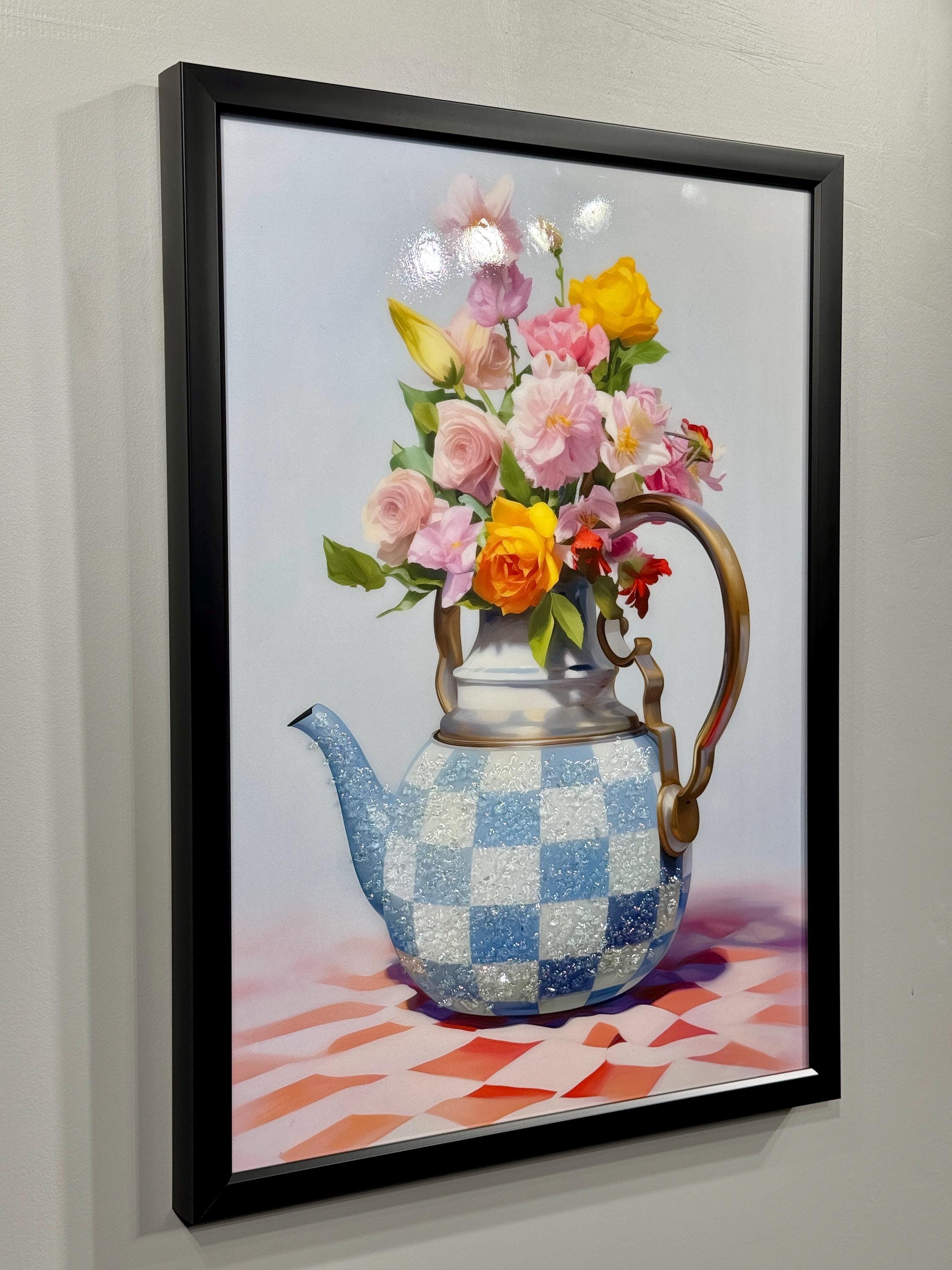 Flowery Teapot Wall Art, 3D Epoxy Still Life Painting, Vintage Kitchen Decor, Elegant Epoxy Wall Decor, Gifts for Women, Romantic Home Art