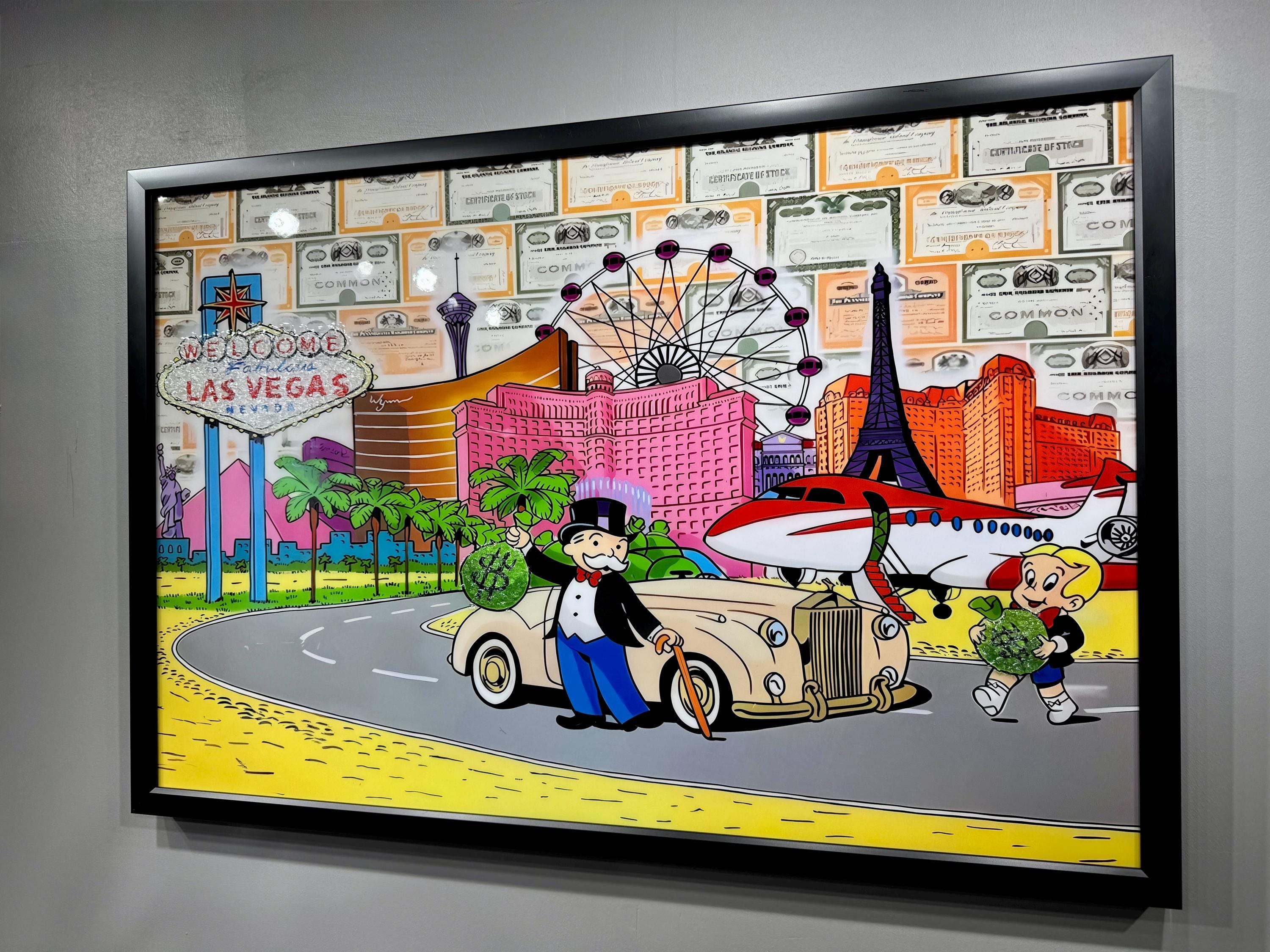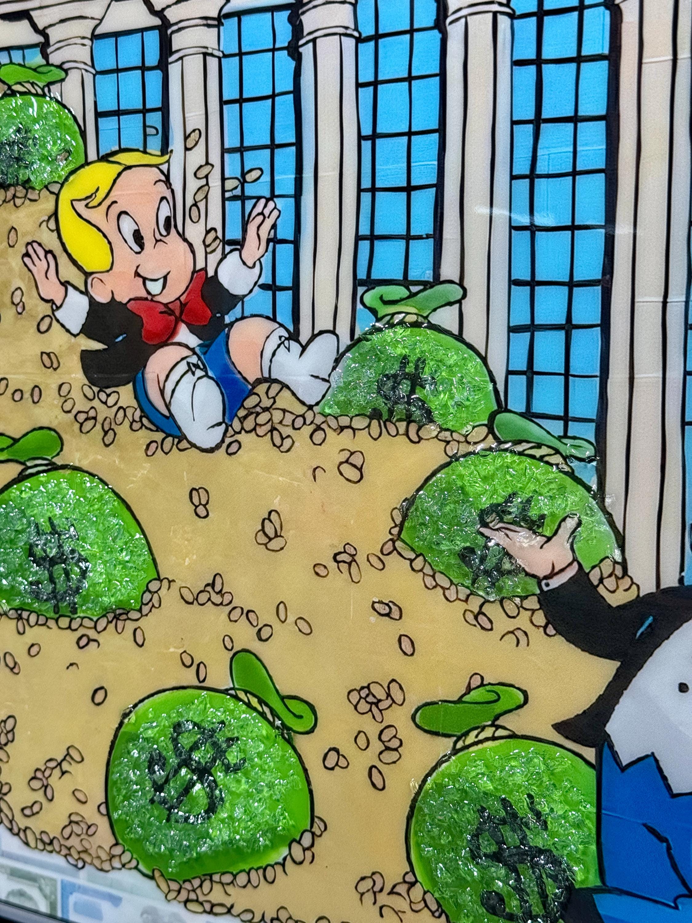 Wall Street Ice Cream Pop Art, Epoxy Resin Wall Art, Monopoly Money Print, Luxury Cartoon Decor, Gift for Him, Alec Style Painting