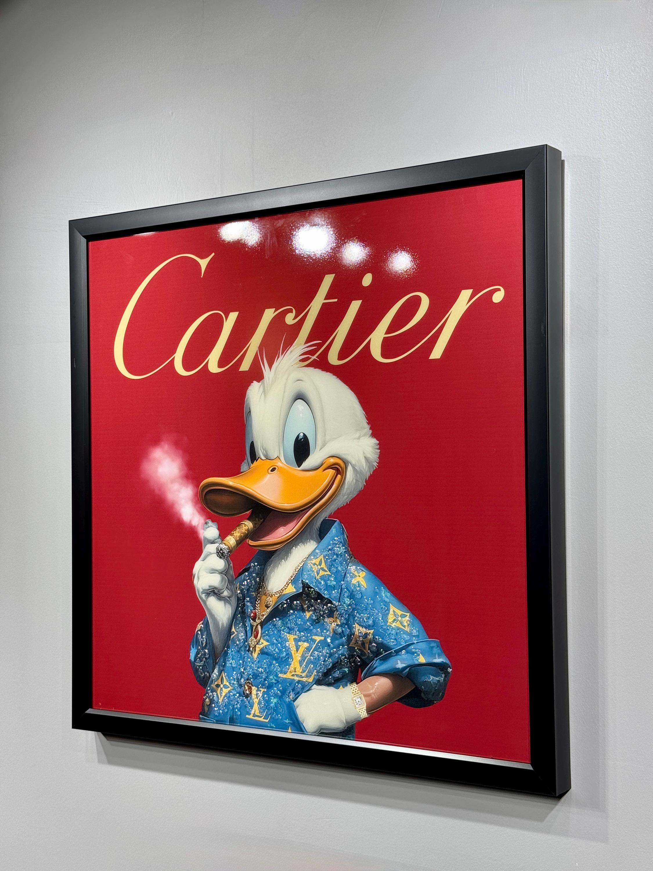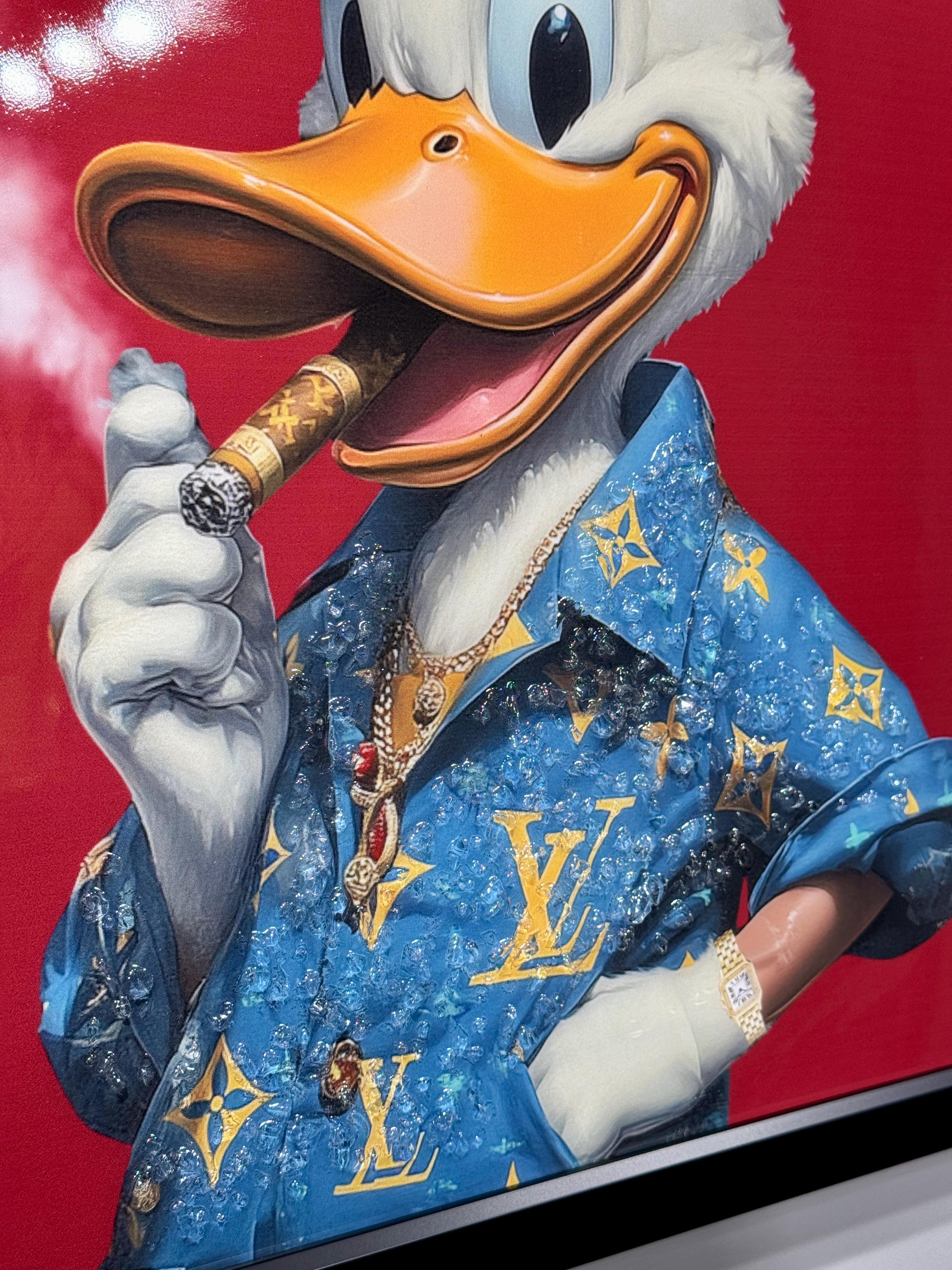 Add a bold, stylish, and eye-catching piece to your collection with this Luxury Duck Epoxy Wall Art. Featuring a confident cartoon duck character in luxury-inspired fashion against a striking red background, this artwork blends humor, pop culture, and high-gloss epoxy craftsmanship.